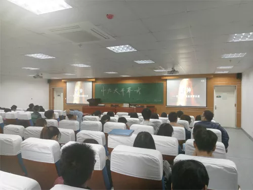 数学与计量经济学院组织师生在数学院207报告厅集中观看党的十九大开幕盛况,参会人员包括数学院全体师生党员、预备党员以及积极分子。