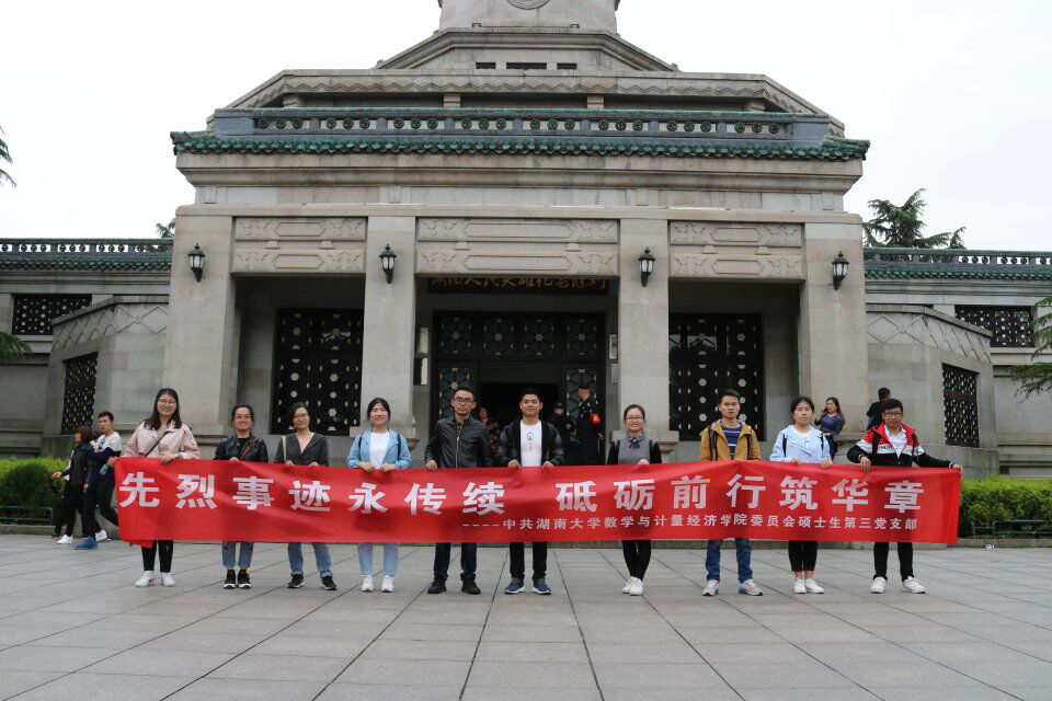 数学与计量经济学院委员会硕士第三党支部成员以“先烈事迹永传续,砥砺前行筑华章”为主题,一起参观学习了湖南省博物馆和烈士公园,了解长沙这座文化名城的厚重历史,缅怀在中国革命斗争中英勇就义、做出伟大贡献的先烈们。让支部成员在不断地学习中深入对党的理解,明确自己党员肩上的责任。