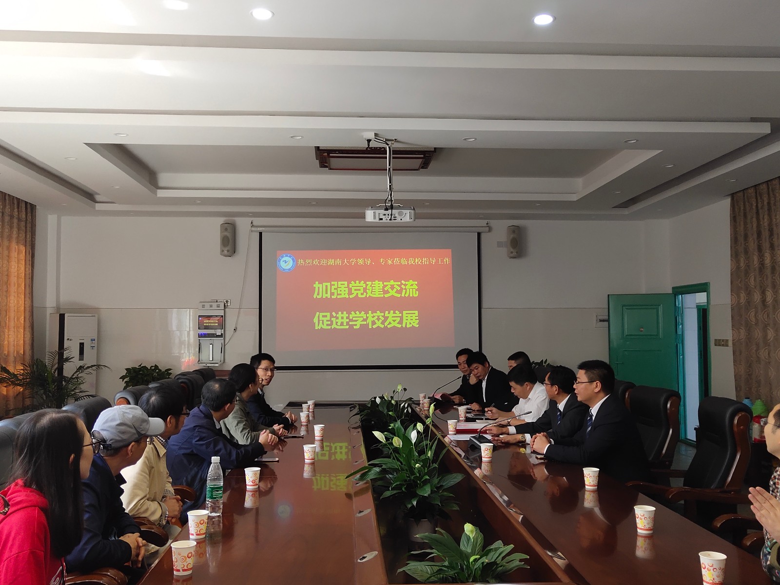 上午,在知源学校致远楼会议室,支部党员与知源学校党委书记、执行校长陈君山同志及全体在校党委委员就支部共建、教育教学、学生培养等方面展开亲切交流。陈君山书记全面介绍了知源学校相关情况,并指出,在中学即将迎来新一轮课改、考改的情况下,高级中学与高校进行深入交流将有利于学校发展建设,也感谢高校党员同志对地方教育工作的指导和支持。邓曙光副书记介绍了知源学校党建工作与学校全面工作联动的实效,表达了希望与两个支部进行支部共建的愿望。谭宏平副校长就中学教育、自主招生等工作与高校党员进行了交流与探讨。