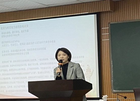 第八组由郭怡楷同志进行分享,该小组讨论主题是疫情防控。该小组首先讨论了习近平总书记的武汉考察讲话,与国外抗疫措施对比,也讨论了我国部分地区抗议过度的问题,以此来展现二十条的进步。最后分析了我国采取当下防疫政策的原因。