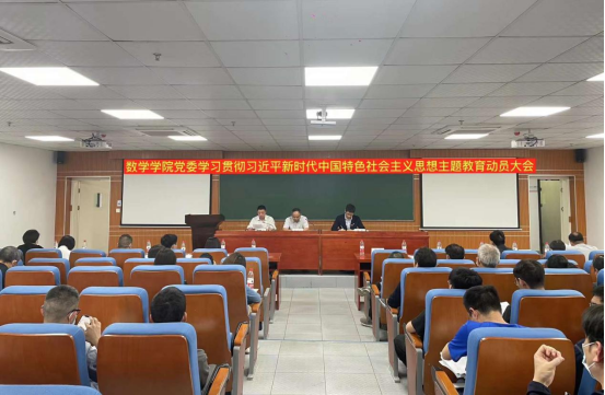 5月9日下午, 泥巴影视 于数学院楼207报告厅召开学习贯彻习近平新时代中国特色社会主义思想主题教育动员大会。学校主题教育第三指导组成员蔡建国、李海涛、靳琳三位老师出席,蔡建国代表指导组作指导讲话。学院党委书记蒋月评作动员讲话,学院党委副书记熊雅主持会议。学院全体教师党员、学生党员代表80余人参加会议。
