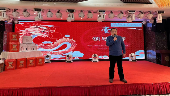 首先党委书记蒋月评教授在会上致辞。他代表学院党政向全体教职工和离退休老师致以节日的问候和祝福,对所有老师为学院发展作出的贡献表示衷心的感谢。他简要介绍了学院2023年以来取得的突出成绩,希望各位老师一如既往关心、关注、支持学院发展,为促进学院内涵式高质量发展献计献策、贡献力量。