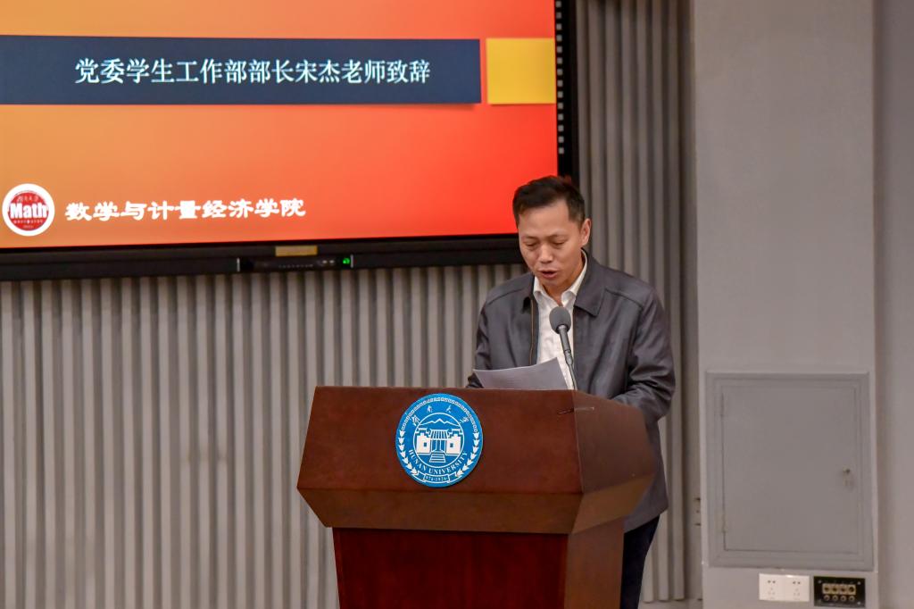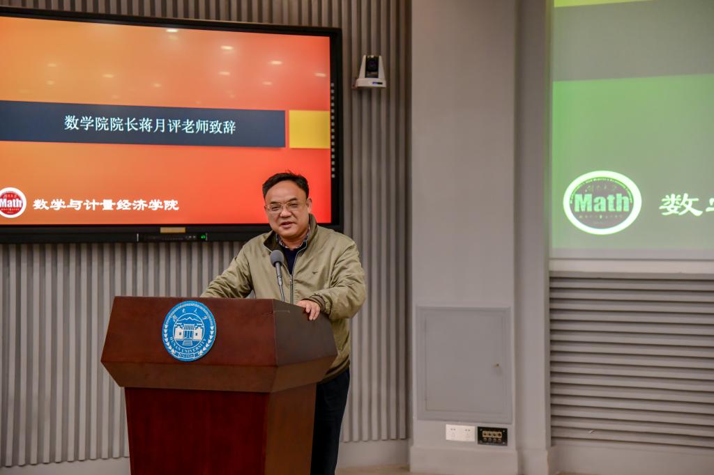 此次活动在合唱的校歌声中隆重开始。首先,党委学生工作部部长宋杰老师和院长蒋月评老师进行了致辞。宋杰老师强调同学们应该建立理想信念,树立信心,在学习过程中脚踏实地,做到知行合一,勇于实践。蒋月评老师由眼前的场景回忆起初次开展励志人物评选活动时的情景,感慨万分,表达了数学院的学子们给予的厚望,也对在场的嘉宾们表示了衷心的感谢。