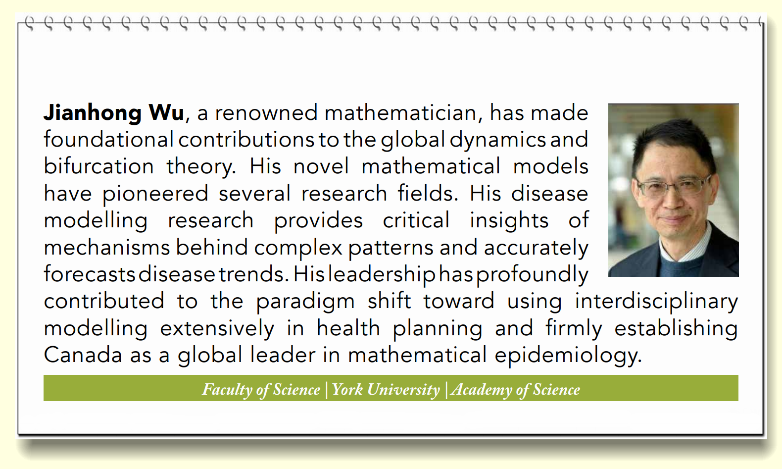 校友、加拿大约克大学吴建宏教授继2022年8月31日当选加拿大健康科学院(Canadian Academy of Health Sciences,CAHS)院士之后,今日又当选为加拿大皇家学会(Royal Society of Canada,RSC)院士。