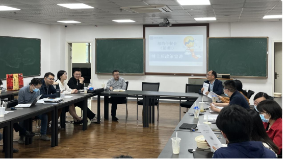 首先,人力资源处张思聪老师作《携手发展 创造未来 大力实施“博士后研究队伍发展计划”》的专题宣讲报告。详细介绍了学校博士后流动站基本情况、相关政策文件、博士后招收类型、薪酬待遇和福利、博士后期间可以申请的基金项目等,重点介绍了“博新计划博士后引进项目的政策、待遇、申报要求等,着重强调了要发挥导师主体作用。