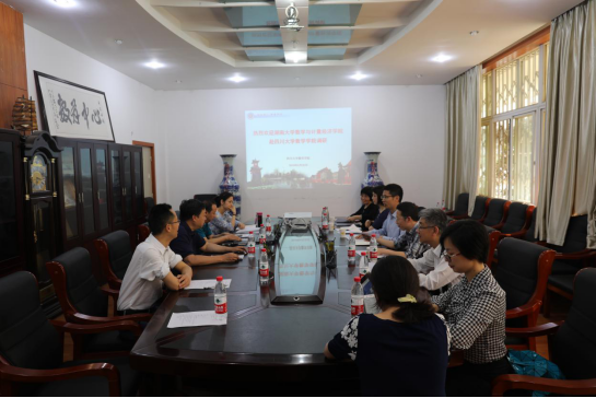 第九次党代会精神,对标一流,推动“一流数学学科”建设,2019 年 4月 24 日至 28 日,副院长黄勇、雷渊、副书记熊雅、罗汉教授、肖萍教授、党办主任胡蕾一行六人赴成都四川大学、电子科技大学就党建与思想政治工作、学科发展、数学专业本科生培养、公共数学课程教学等展开深入调研,学习兄弟学院好的经验与做法。