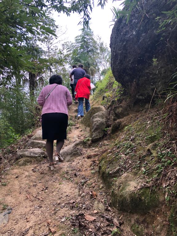 20日下午,四个教工党支部代表先是乘坐高铁到达溆浦南站,而后转乘汽车经过一个多小时的山路颠簸,于14:00左右到达白水洞村。因为是第二次到来,四位老师自行调研了飞龙瑶寨花瑶花文创展览及正在扩建的白水洞小学。
