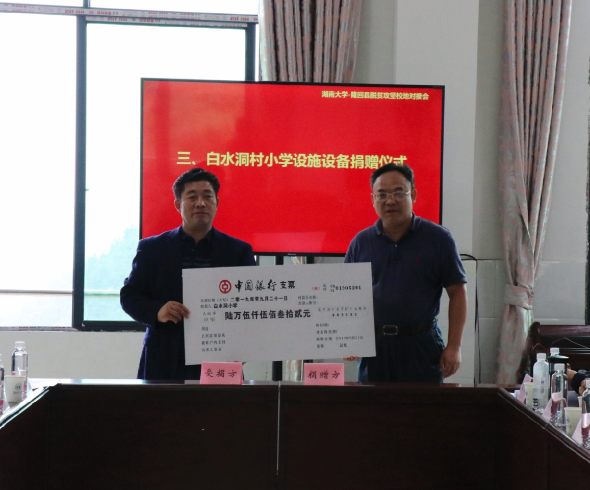 9月20日至21日,数学学院党委4个教工党支部成员在党委成员蒋月评院长的带领下,又一次奔赴湖南省邵阳市隆回县白水洞村助力扶贫攻坚,落实结对帮扶工作。这是继3月23日学院4个教工党支部成员第一次赴白水洞村联系结对帮扶对象,7月1日学院党委19名党员赴白水洞村开展结对帮扶工作2个月后,学院党委再次来到这里。这次的工作重点包括:一是了解4户结对帮扶户反馈的困难在村委的协调下解决的进度,及时为他们送上技能发展基金,促进他们技能提升。二是7月份了解到白水洞小学课桌椅老旧的情况,动员全院师生募集资金,此次为白水洞小学送上全院师生为白水洞小学购置课桌椅所募集到的资金。三是紧紧围绕“不忘初心、牢记使命”主题教育,把白水洞村脱贫攻坚的实践作为一个生动的育人课堂,促进党委党支部主要同志更好的理解共产党员的初心与使命,推进学院“不忘初心、牢记使命”主题教育走深走实。