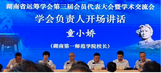 学会第二届理事长、湖南第一师范学院校长童小娇致开幕词。童小娇介绍了湖南省运筹学会的发展过程及学会在组织建设、学术活动、对外交流、社会服务、科研成果、人才培养等方面取得成绩,对本次会员代表大会的召开表示祝贺。