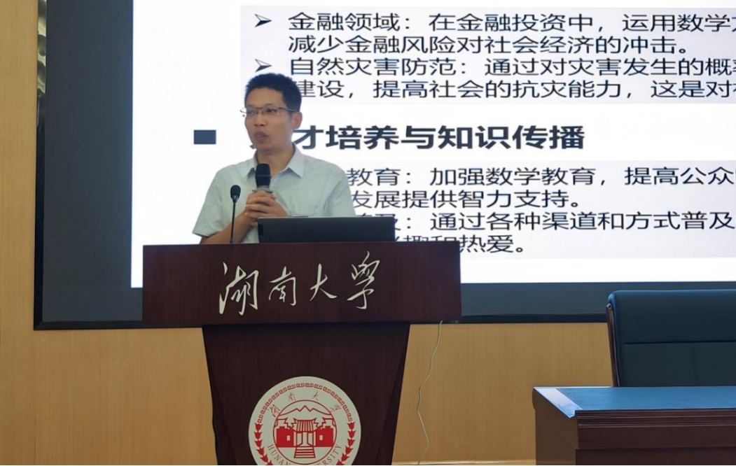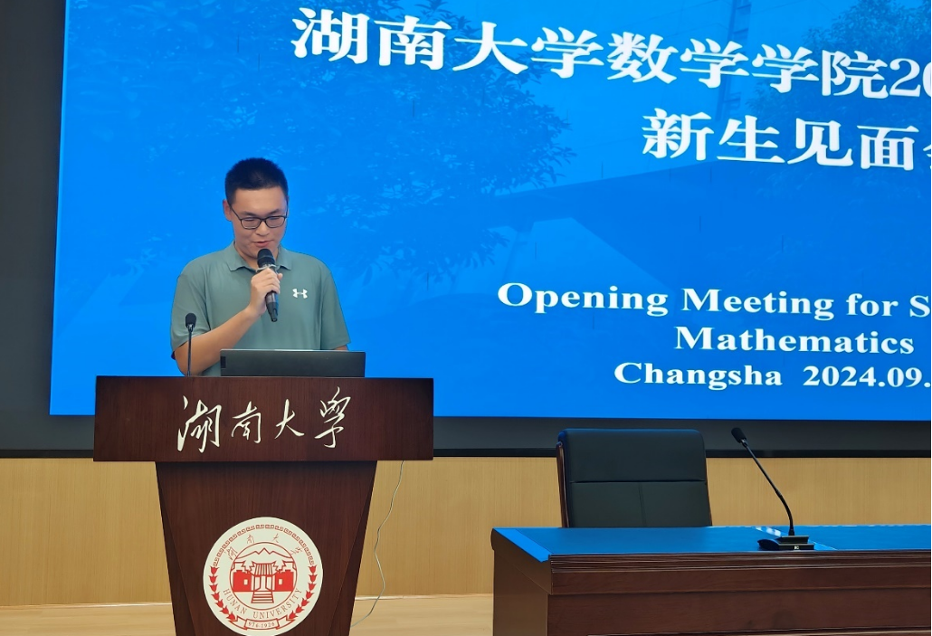 黄勇老师向开启新征程的同学们表示热烈祝贺和欢迎,并分别从学院数学学科的发展历史、数学在当今社会的重要性和新时代数学人肩负的责任三个方面展开对新生的殷切嘱托。学院数学学科拥有悠久的学科历史及深厚的学术底蕴,获得了诸多高光和荣耀,在多年地努力下,数院师资队伍不断壮大人才培养体系不断完善、科学研究成果享誉国际。学院在致力于培养数学创新和传承数学文明、拓展人类知识边界、聚焦人才培养与知识传播、面向服务国家重大战略需求层面持续发力。黄勇老师对新生们提出殷切期望,希望同学们能够传承湖大数院基因,面向未来、拼搏进取、善于学习,立担当之志、厚致远之基、修立身之德、奋力书写为中国式现代化挺膺担当的湖大数学新篇章。