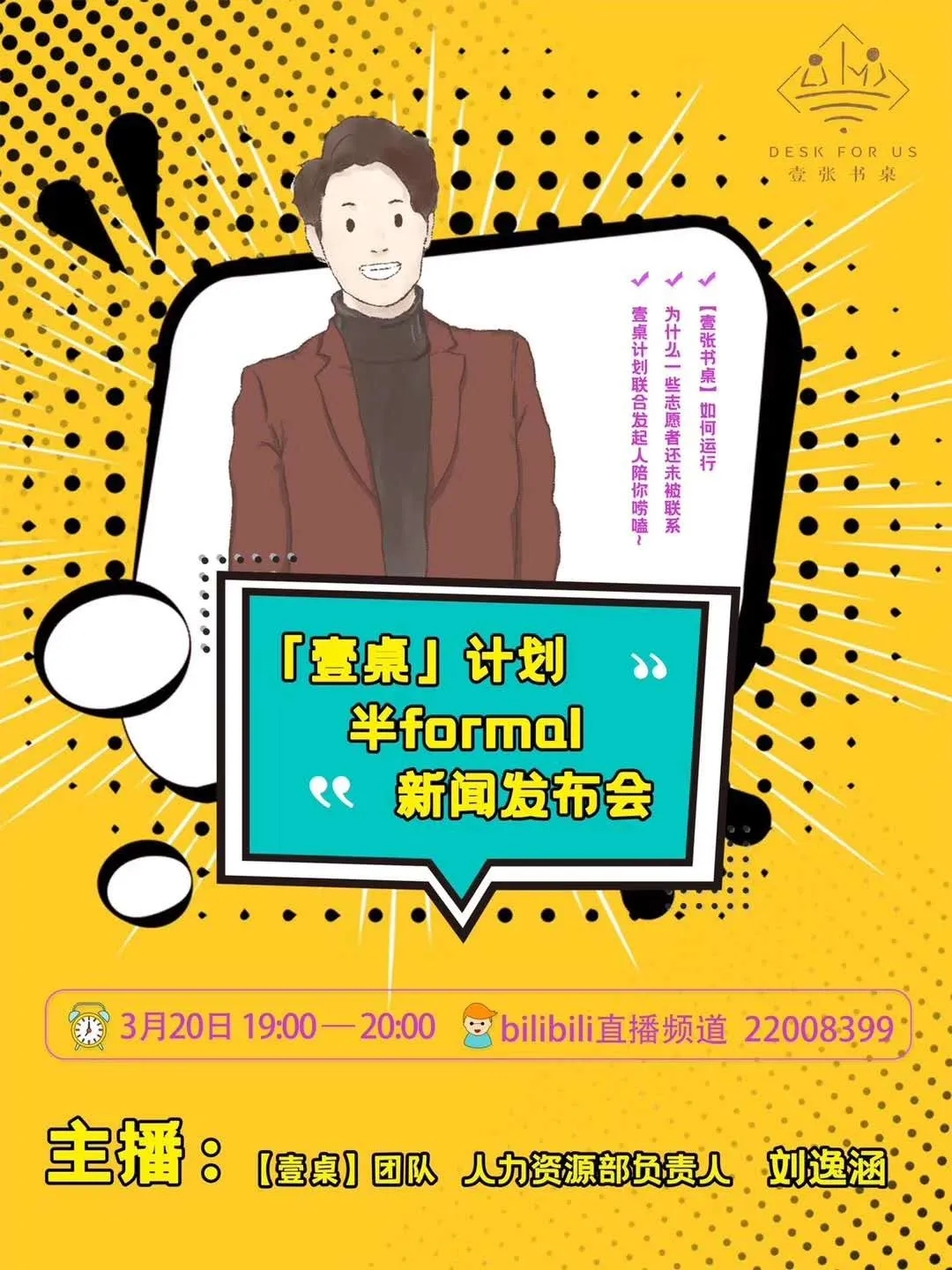 “壹桌计划”半formal新闻发布会于3月20日晚在网络平台直播,从发起、组织到推广、扩容,刘逸涵带着大家唠嗑这20多天并不轻松的所有,看似语调轻松,实则付出深厚,网友们也纷纷为他们点赞。